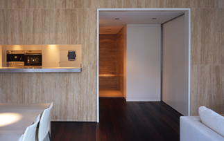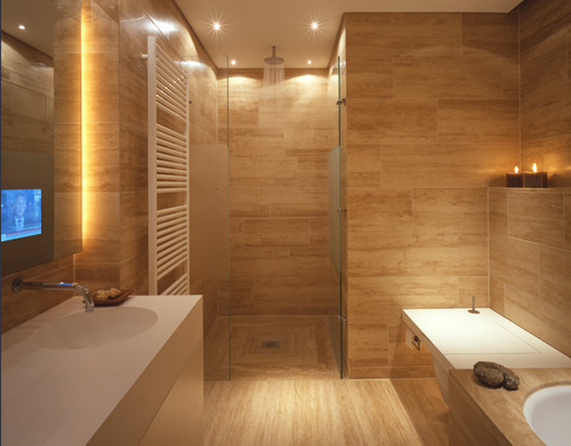 Travertin pur war hier das Leitmotiv, die Längsstreifen als Stilmittel konsequent eingesetzt.
